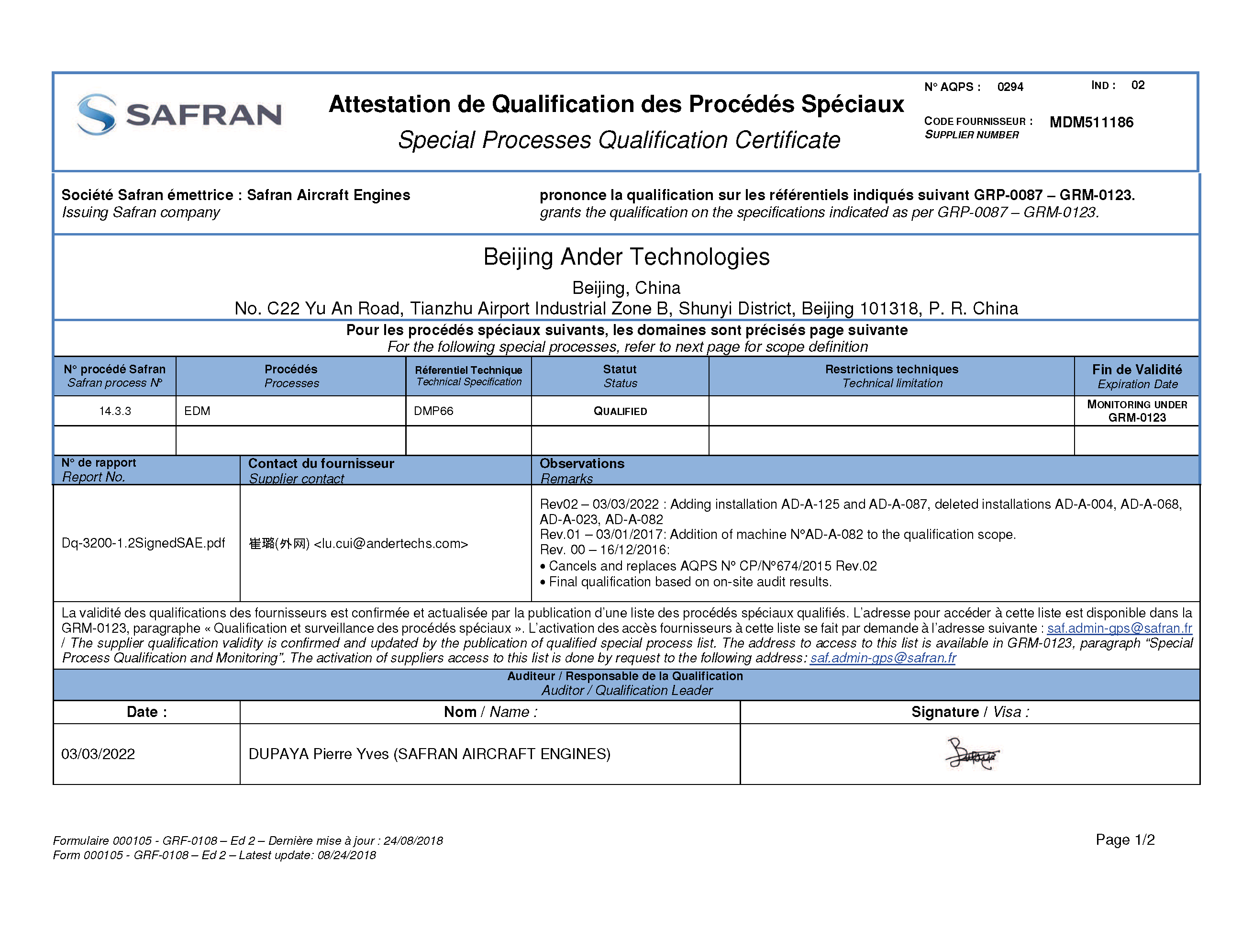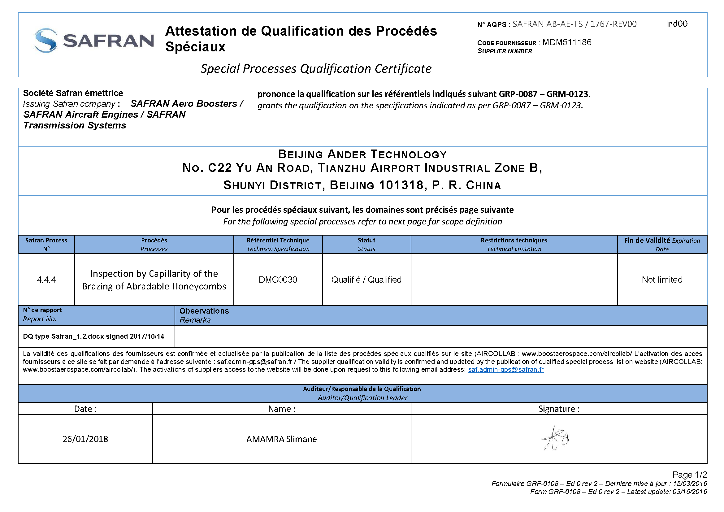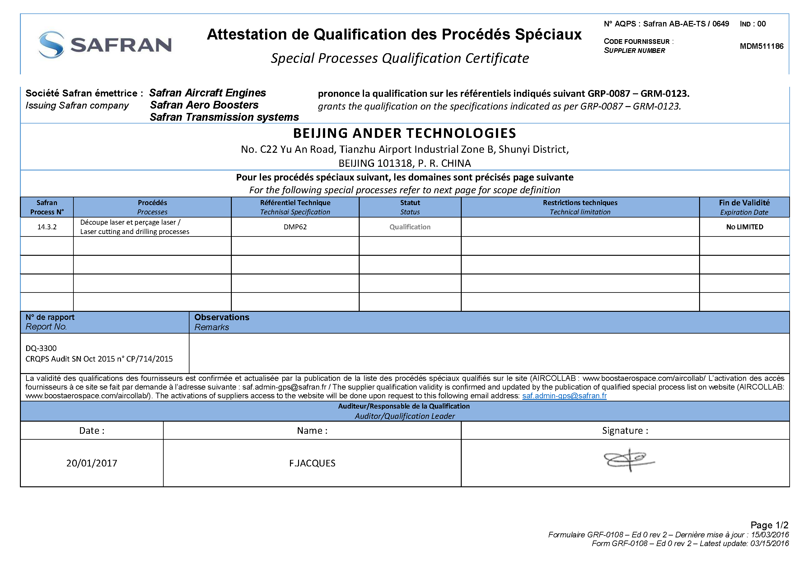 北京安达泰克公司通过赛峰集团(Safran)严格审核,获得钎焊与热处理(Brazing & Heat Treating)、、TIG焊接(TIG Welding)、电火花加工(EDM)、荧光渗透检测(FPI)、激光切割(Laser Cutting) 等核心工艺认证。该认证标志着我们的特殊过程制造与检测能力完全符合赛峰航空发动机、起落架及机载设备的高标准要求,成为其全球供应链的可靠合作伙伴