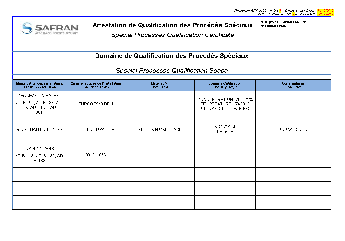 我们的赛峰(Safran)认证工艺能力