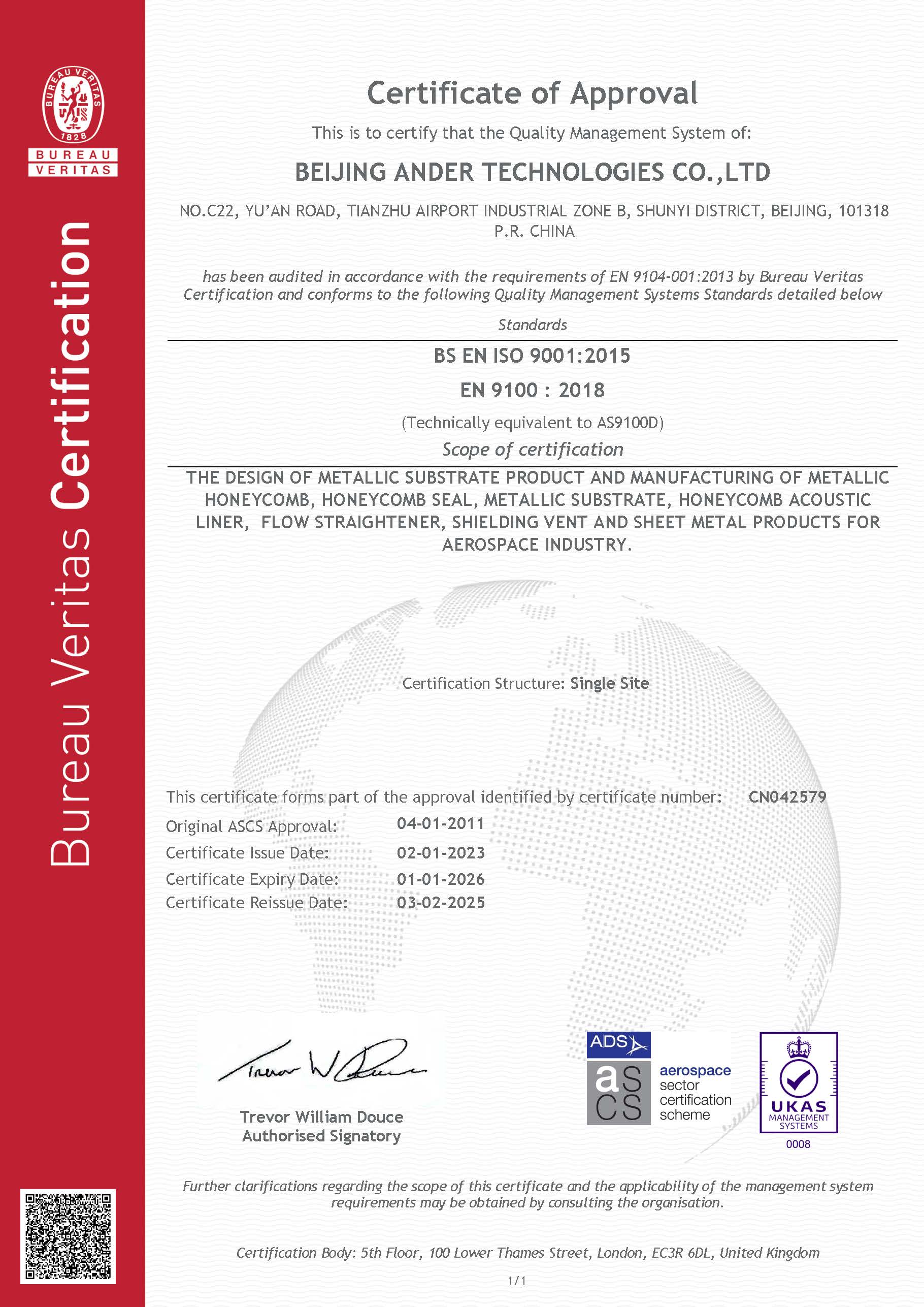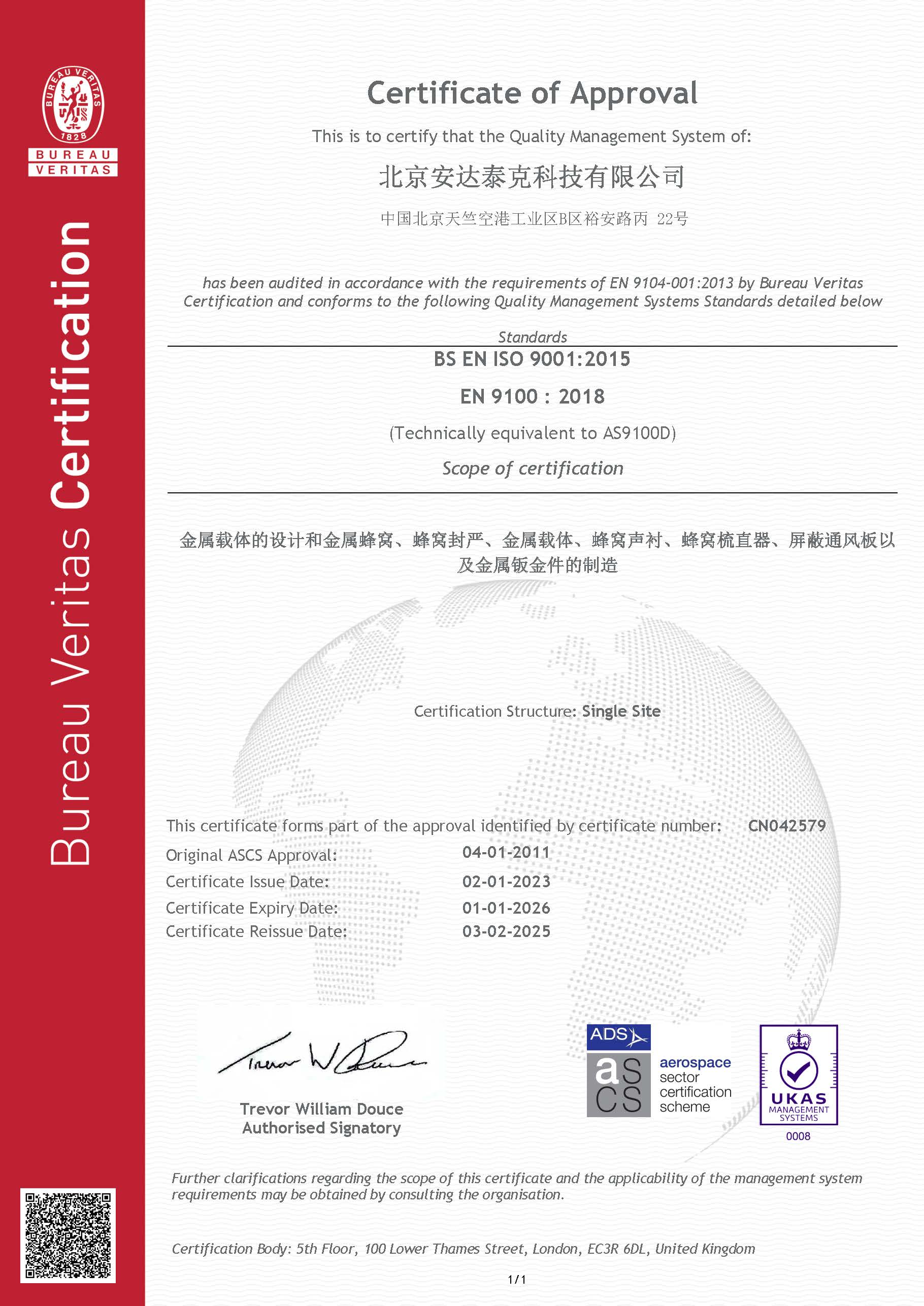 我们以AS9100D体系为基石,为合作伙伴提供更安全、更可靠的产品与服务。
