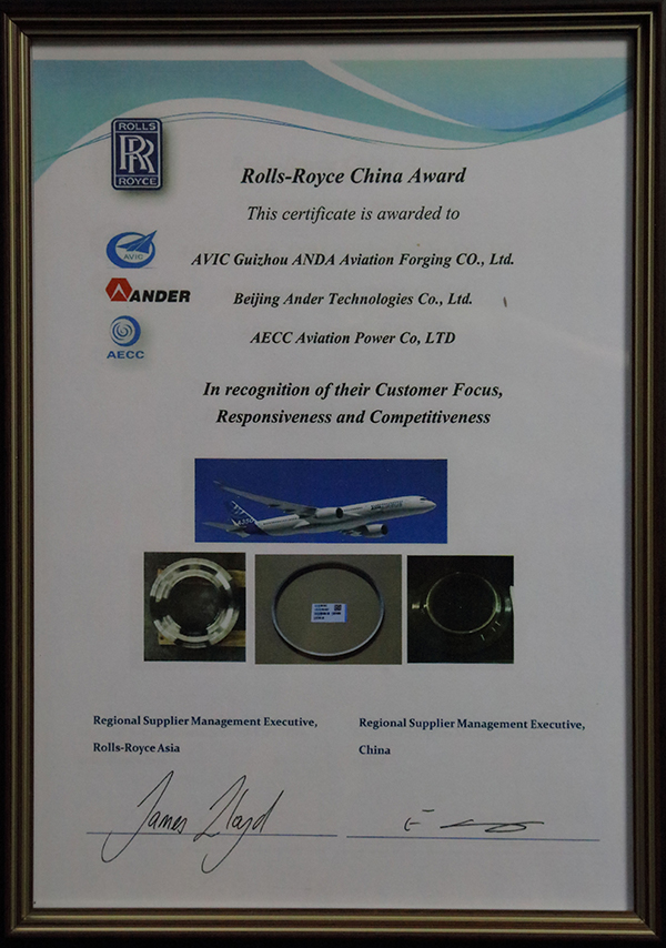 罗罗公司于2017年5月17---19日在贵州安顺召开中国供应商大会,我公司很荣幸获得罗罗颁发的供应商快速响应奖。该奖项同时颁发给中航工业安大公司、中国航发西航公司,表彰三家供应商聚焦客户、快速响应和竞争力,为罗罗快速研制新产品的合作典范。